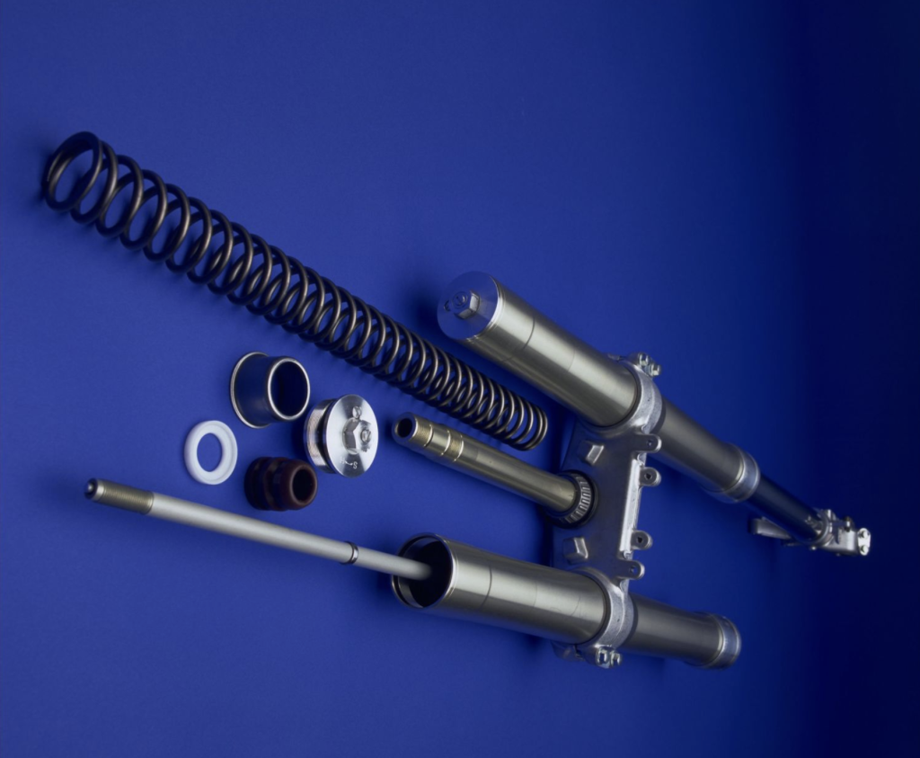 The revamped Kayaba forks for 2000 added lighter internals, new valving, slicker seals, and a new low-friction treatment for the inner tubes. Photo Credit: Yamaha