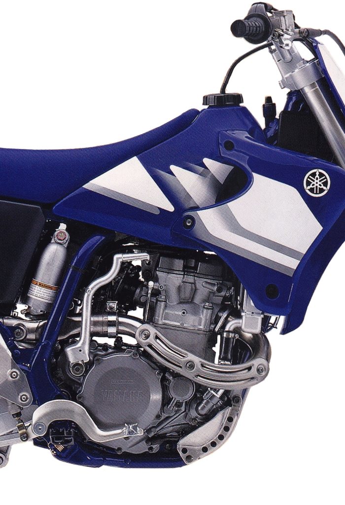 Frame changes for 2000 included updated geometry that repositioned the steering head rearward 5mm and reduced the wheelbase 5mm for improved turning. All-new metallurgy for the chromoly frame increased strength and reduced weight for 2000 with a switch from steel to aluminum for the subframe further trimming ounces. New clamps added additional bracing for the lower clamp and repositioned the bar mounts 10mm forward for improved ergonomics. A redesigned clutch perch for 2000 featured a revised ratio and a new on-the-fly adjuster. The clutch cable was also upgraded to a new stainless-steel design that Yamaha claimed would provide smoother operation.