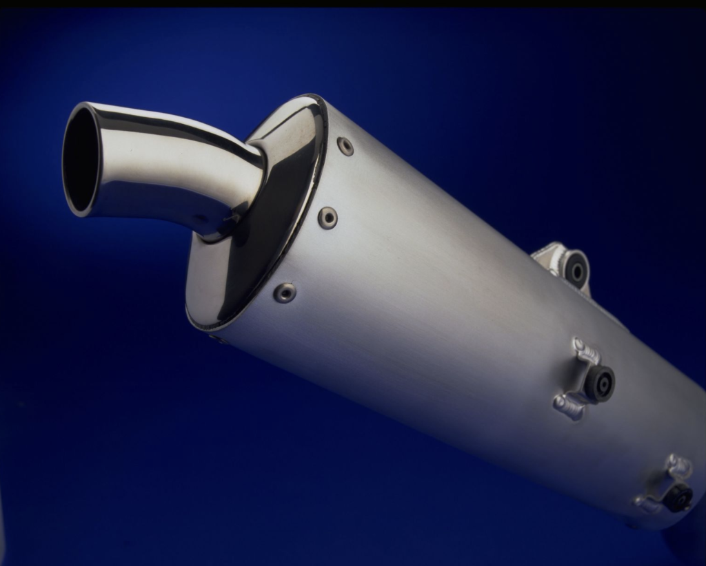 An all-new muffler for 2000 offered an enlarged core but no reduction in the exhaust note from the big thumper. Photo Credit: Yamaha