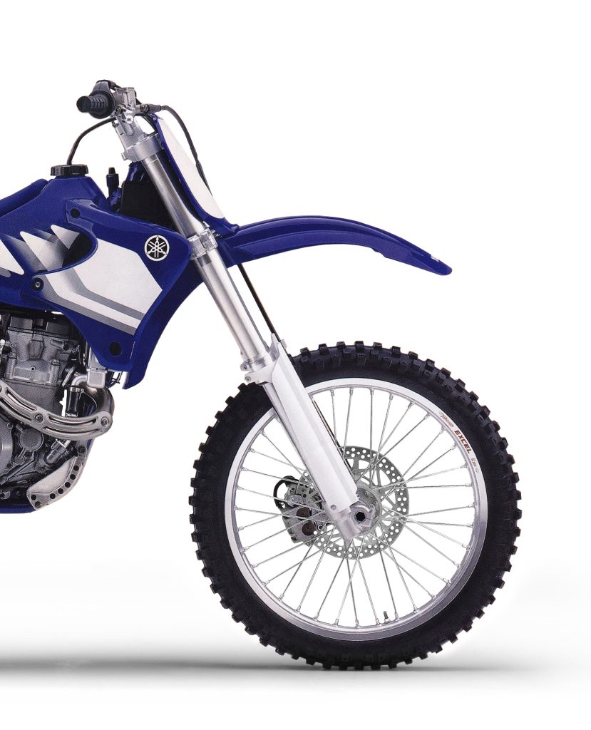 In the rear, Yamaha added an all-new Kayaba shock with increased adjustability and all-new valving. The new damper added a high/low-speed compression adjuster to go with the external rebound selector. All-new valving was added but the spring rate remained unchanged at 5.2kg/mm. Overall travel remained the same as in 1999 with 12.4” available.