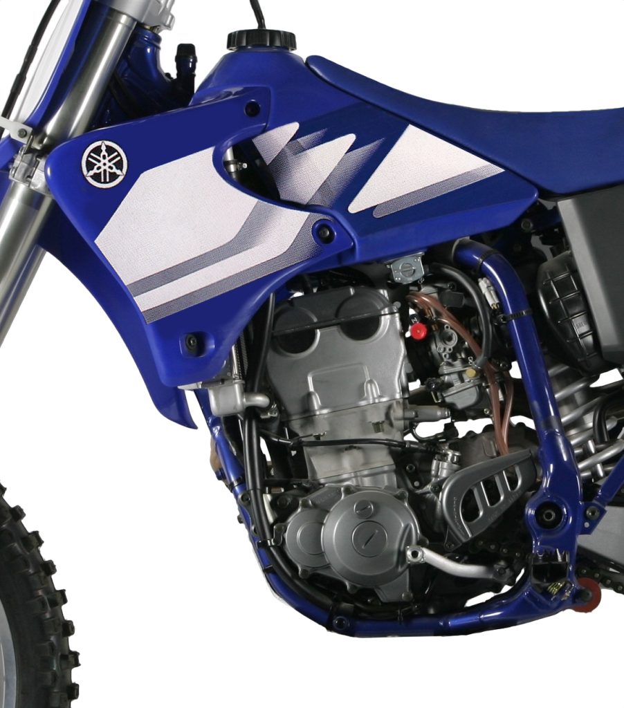 In 1998, all of that changed with the introduction of Yamaha’s revolutionary YZ400F. Part YZ250 motocrosser and part YZF600R road racer, the YZ400F melded the broad power of a traditional four-stroke with the quick-revving and lithe handling of the best two-strokes. It’s 399cc short-stroke single used an ultra-light “slipper” piston and five-valve Genesis head cribbed from the YZF street bikes to provide a hybrid powerband that combined the best traits of two-and four-stroke designs. There was far less chug than the traditional four-strokes of the time and a lot more rev. The new Keihin FCR carburetor provided previously unheard-of throttle response and did away with ninety percent of the dreaded “hiccup and bog” that plagued most big four-strokes. With YZ-spec suspension, excellent handling, incredibly broad and easy-to-use power, Yamaha build quality and reliability, and a bargain basement price of $5799, the all-new YZ400F proved to be one of the most influential machines in motocross history.