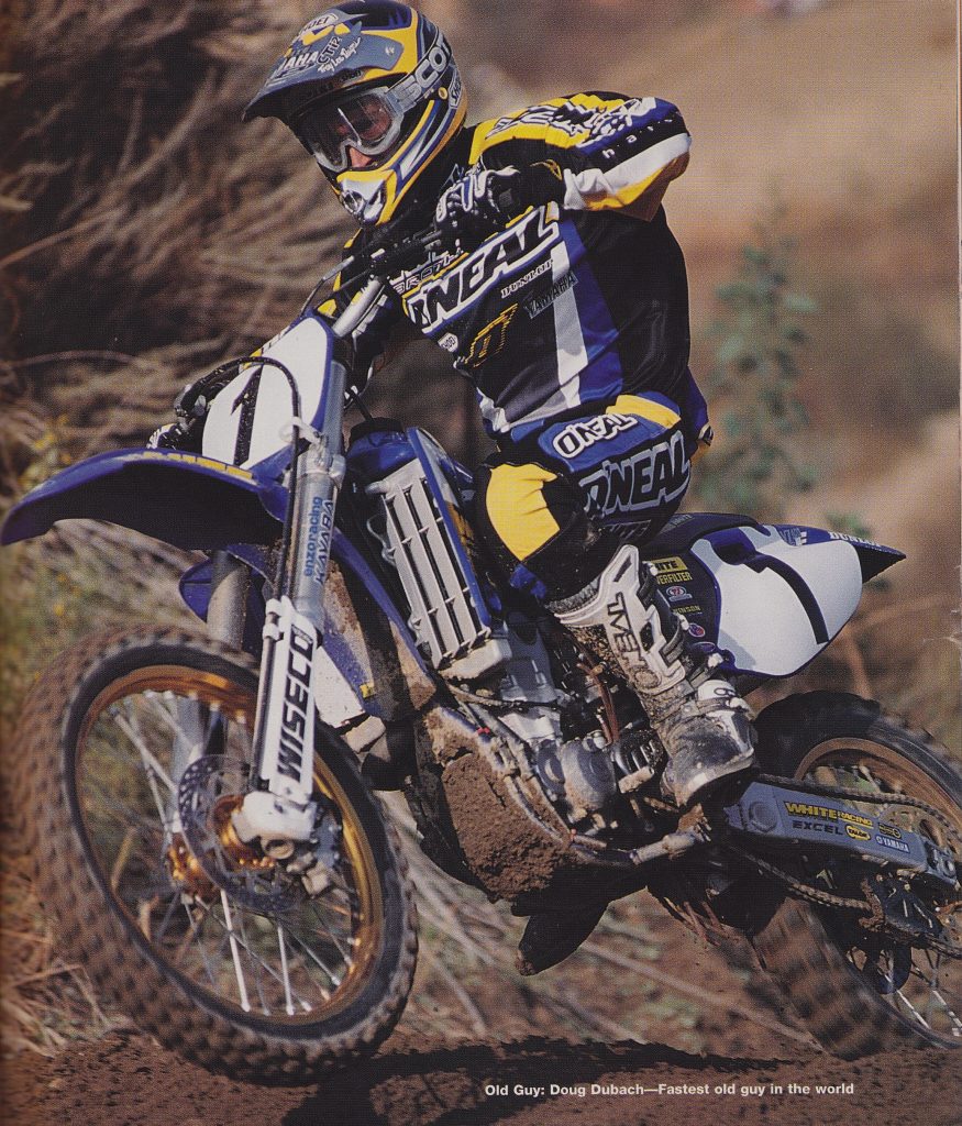 Long-time Yamaha stalwart Doug Dubach was the face of the all-new YZ-F, and he continued his PR tour by racing the redesigned YZ426F to another World Vet title in 2000. Photo Credit: Motocross Journal