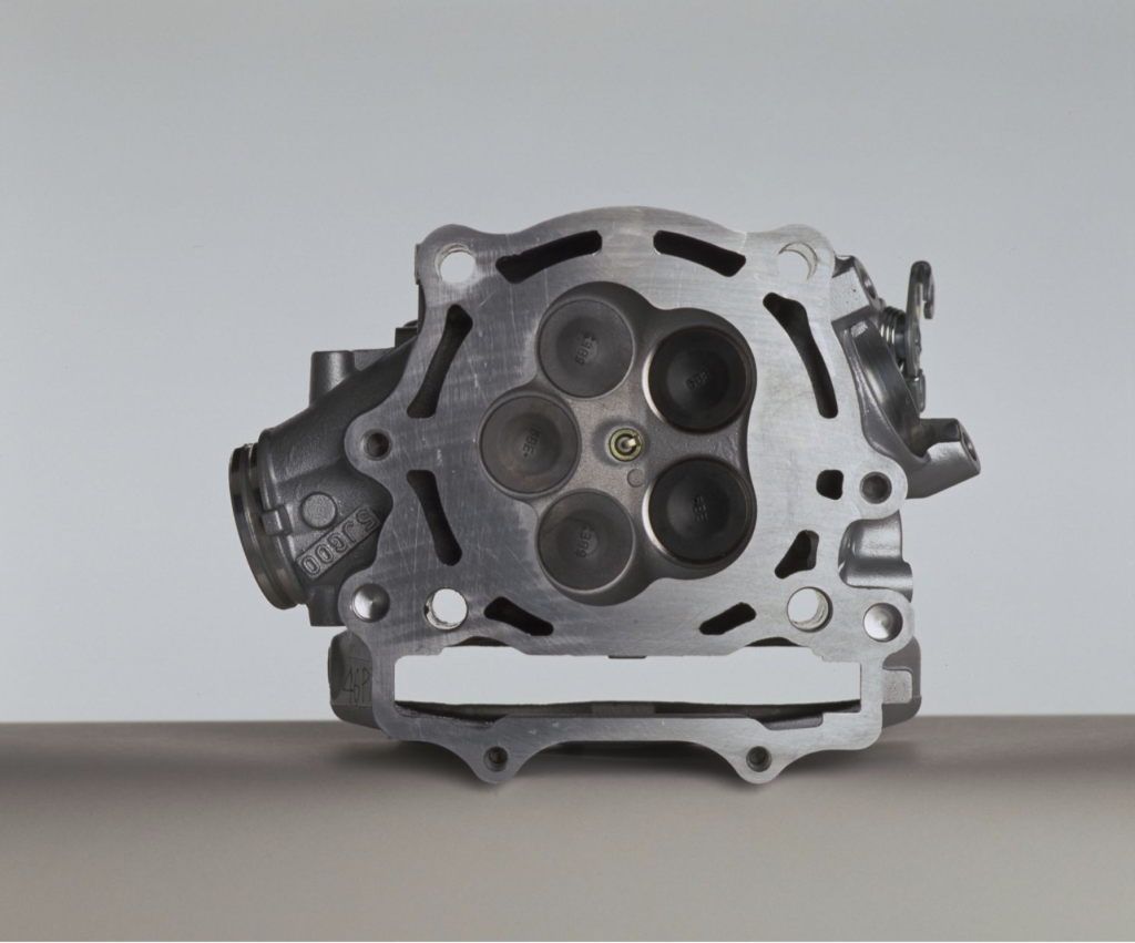 The YZ426F retained the five-valve Genesis head used on the original YZ400F. By using five smaller valves instead of four larger ones, Yamaha was able to keep the reciprocating mass of the top end as low as possible. This paid dividends in the free-revving feel of the YZ-Fs and helped provide the machines with excellent top-end longevity. Photo Credit: Yamaha