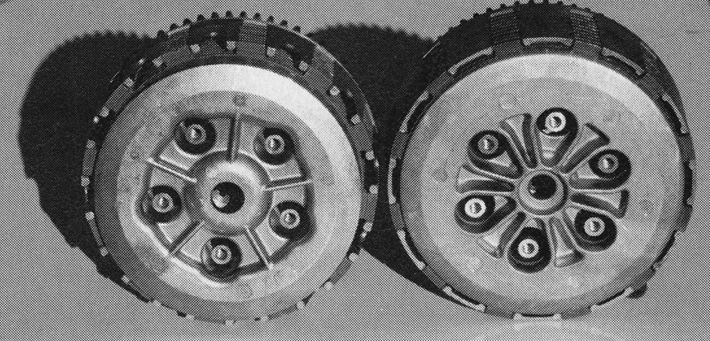 An upgraded clutch for 2000 (right) added an additional plate and a 7mm larger diameter for improved durability. Photo Credit: Motocross Action