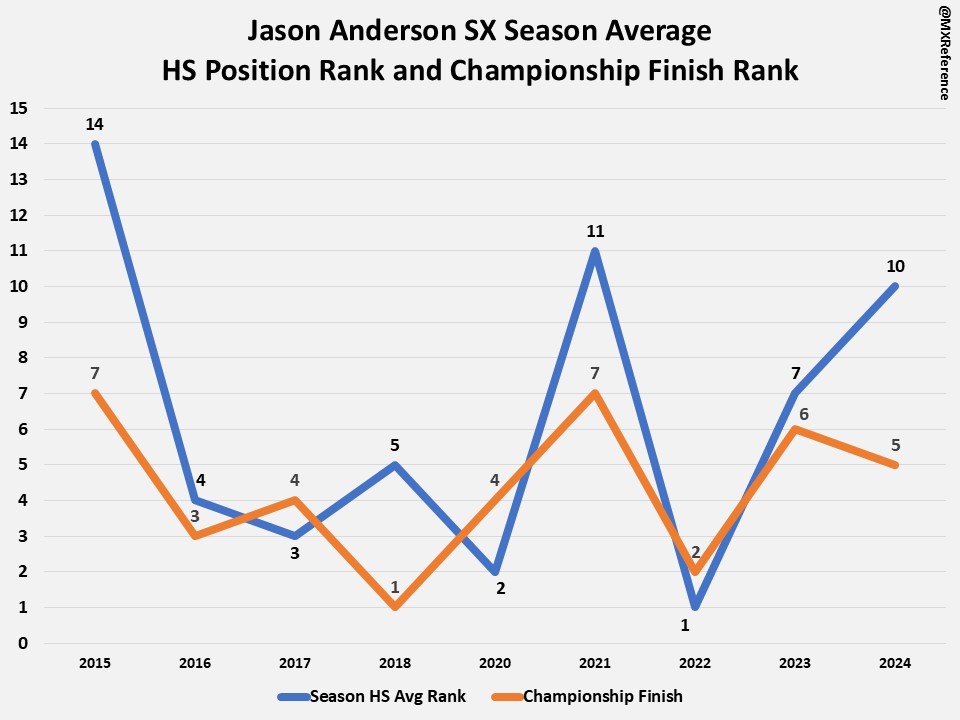 - The last is Jason Anderson in 2022. Anderson won 7 races in 2022, the same amount as the rest of his career combined. Anderson was in my opinion better in 2022 vs his 2018 title season, he would have been even more competitive in the title if he didn’t lose a lot of points in a few rounds that year.