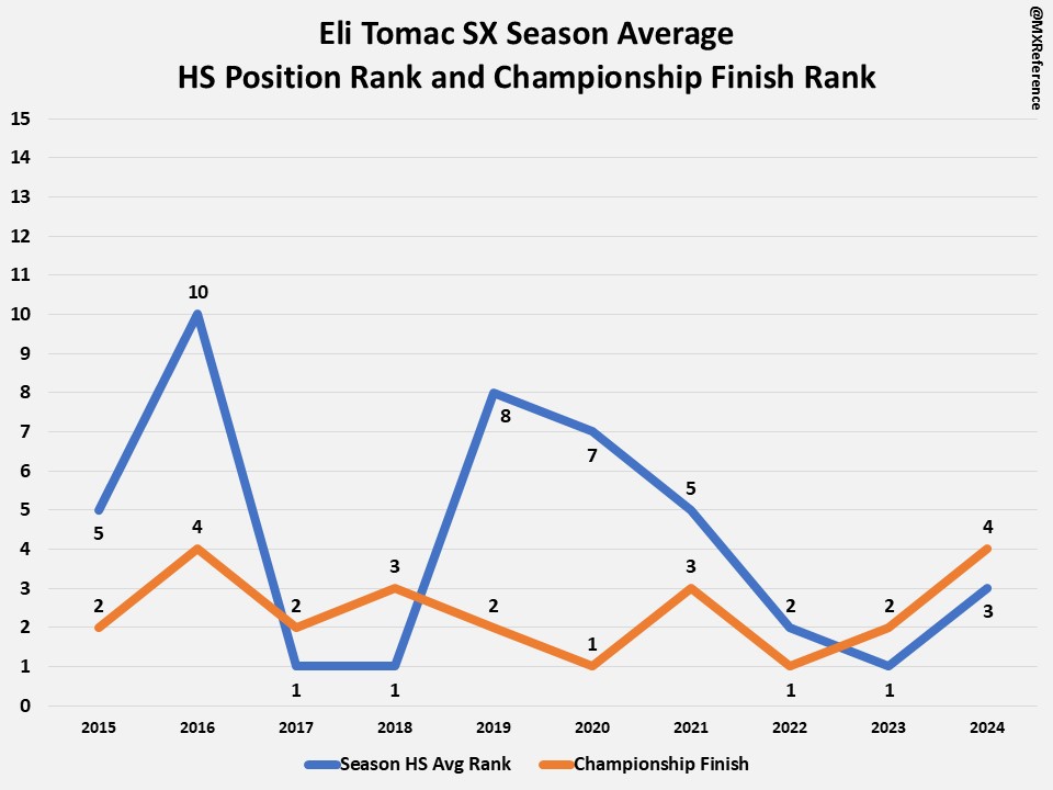 | 2024 | Eli Tomac | 6.73 | 3 | 4 |