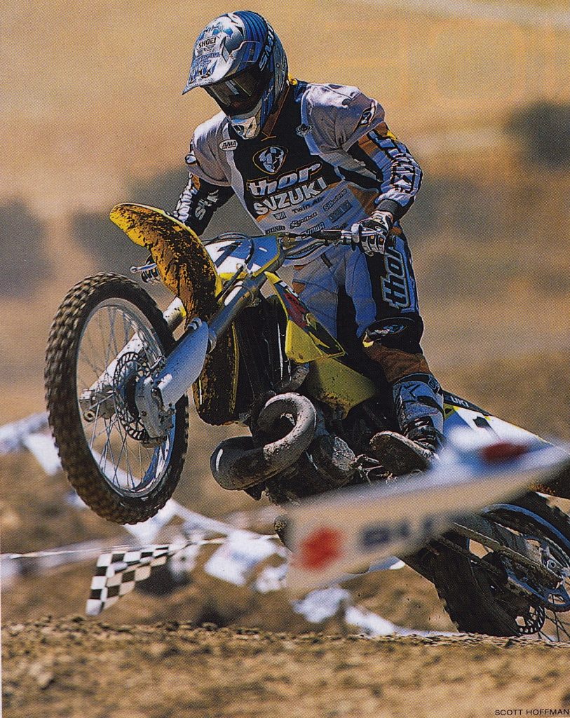 The late nineties were a bit of a mixed bag for team Suzuki in the 250 class. In 1996, Roger De Coster and his crew had released an all-new RM250 to much press acclaim. The redesigned machine featured all-new styling, a Honda-like layout, and super trick Showa conventional forks. Several magazines picked it as the top 250 of 1996 due to its excellent forks, crisp handling, and snappy power. On the professional front, the RM was still a work in progress in 1996 but Greg Alberyn and Mike LaRocco were able to card wins at Unadilla and Washougal on their factory machines.
