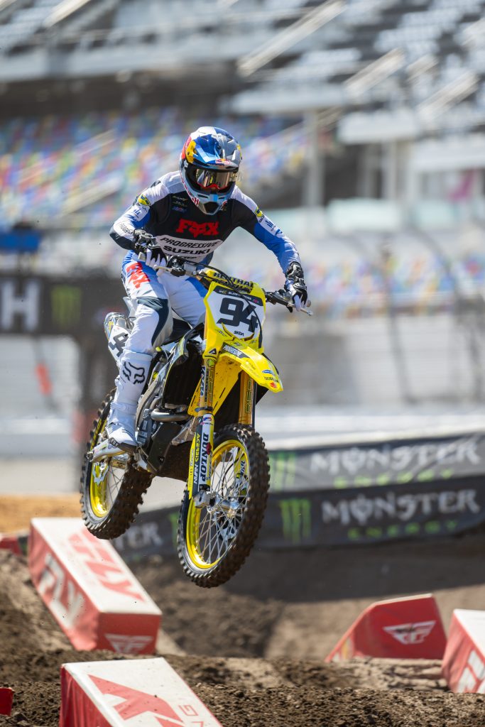 Ken Roczen: If you listened to the RMATVMC Keefer Tested Podcast this week you can hear Mark Johnson from REP talk about how Kenny has been pretty mellow with changing suspension specs and for the most part he’s been happy with this bike. If you look at Kenny’s bike you can see that it looks tall because Ken likes it a little taller and that is by design. Maybe he isn’t getting the sharpest cornering Suzuki we’ve seen but he is getting a better high speed compression feeling chassis feel when he is loading it into transitions as well as heavy loads. Ken is probably the most mentally strong riders on the gate minus Webb, so seeing him get this W while he knew Webb was all over him says something about his resilience. When you have a guy behind you that has passed you several times late in the race to win, sometimes that can make you crumble over and over. Some of you may be saying well he has crumbled before and maybe that is correct, but it’s how many times you can get back up from that crumble to succeed again and Kenny showed us his heart at Daytona! Shout out to Mark at REP and Jamie at Twisted Development for getting a NON factory bike to win Daytona SX!