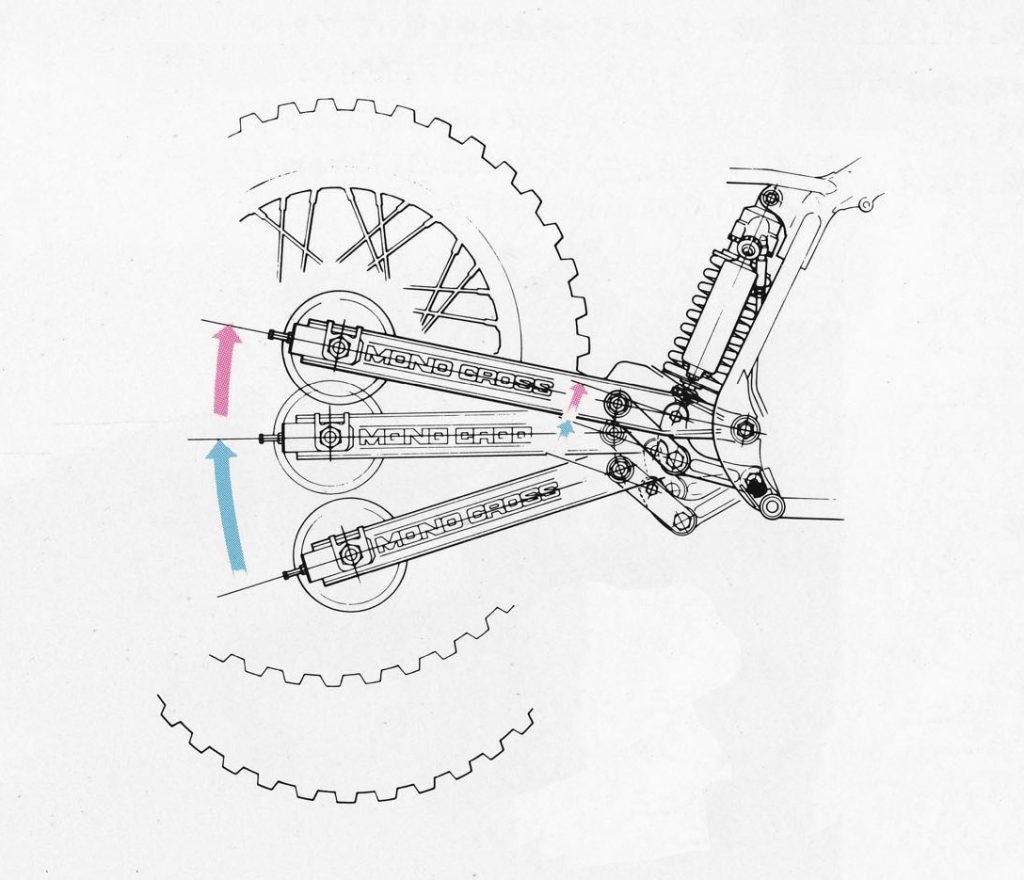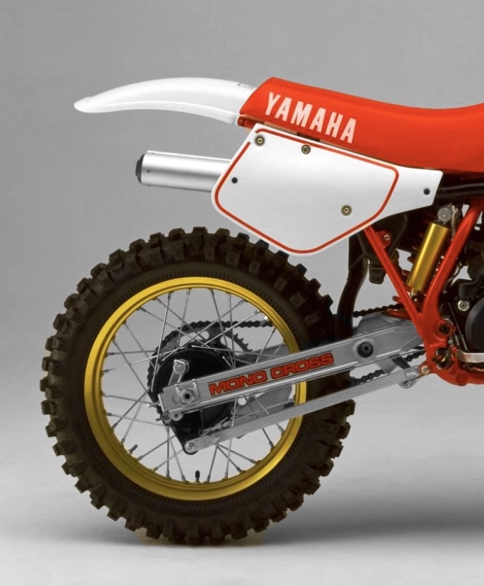In 1986, Yamaha redesigned their Mono Cross rear suspension to sit lower on the chassis for improved weight distribution and performance. Photo Credit: Yamaha