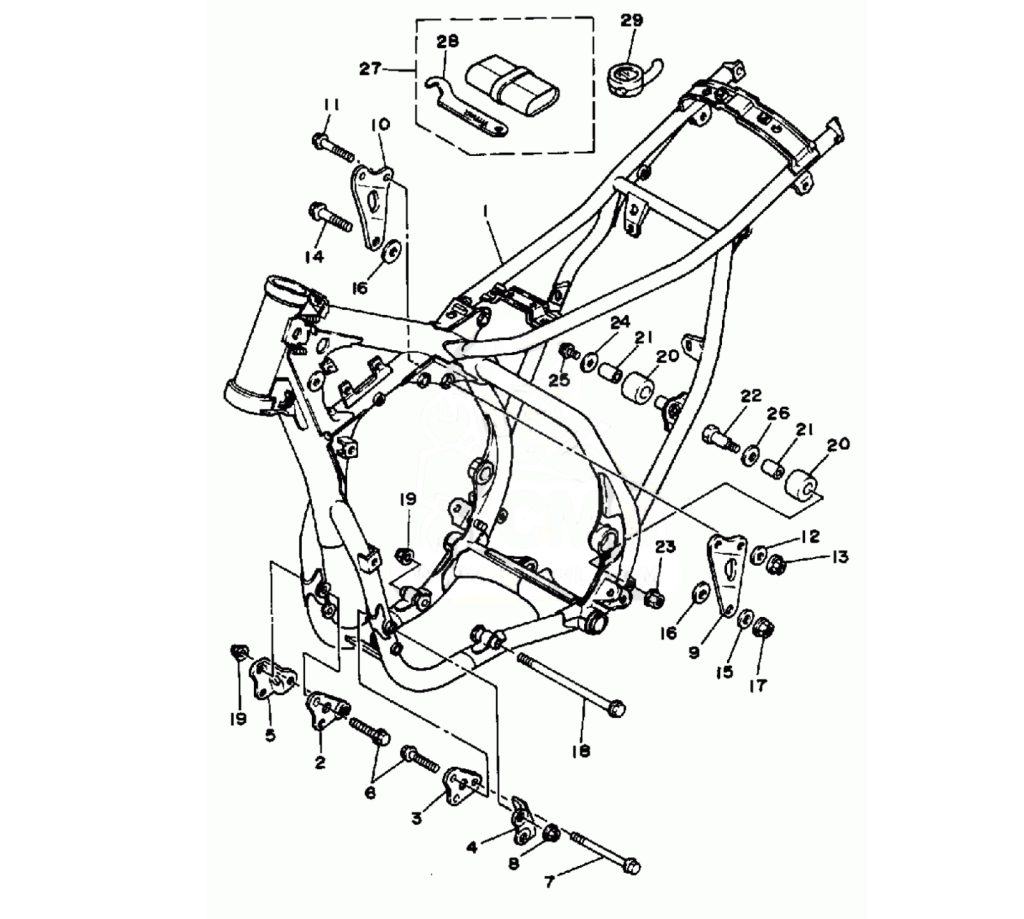 An all-new frame for 1986 offered stronger construction and a repositioned rear suspension system. Photo Credit: Yamaha