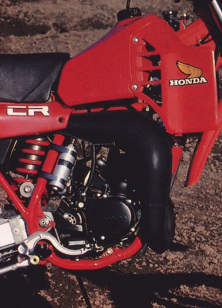 Lightweight alloy components helped shave four pounds of unwanted weight off the CR125R for 1982. Photo Credit: Honda