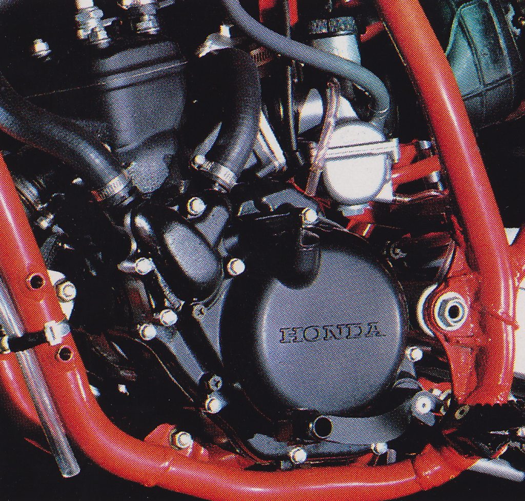 All-new in 1981, the CR’s 122cc motor featured a list of significant refinements for 1982. Improved cooling, all-new porting, more responsive reeds, a revamped ignition, and an all-new exhaust aimed to boost low-to-midrange power and improve the peaky ’81 motor’s usability. Photo Credit: Honda