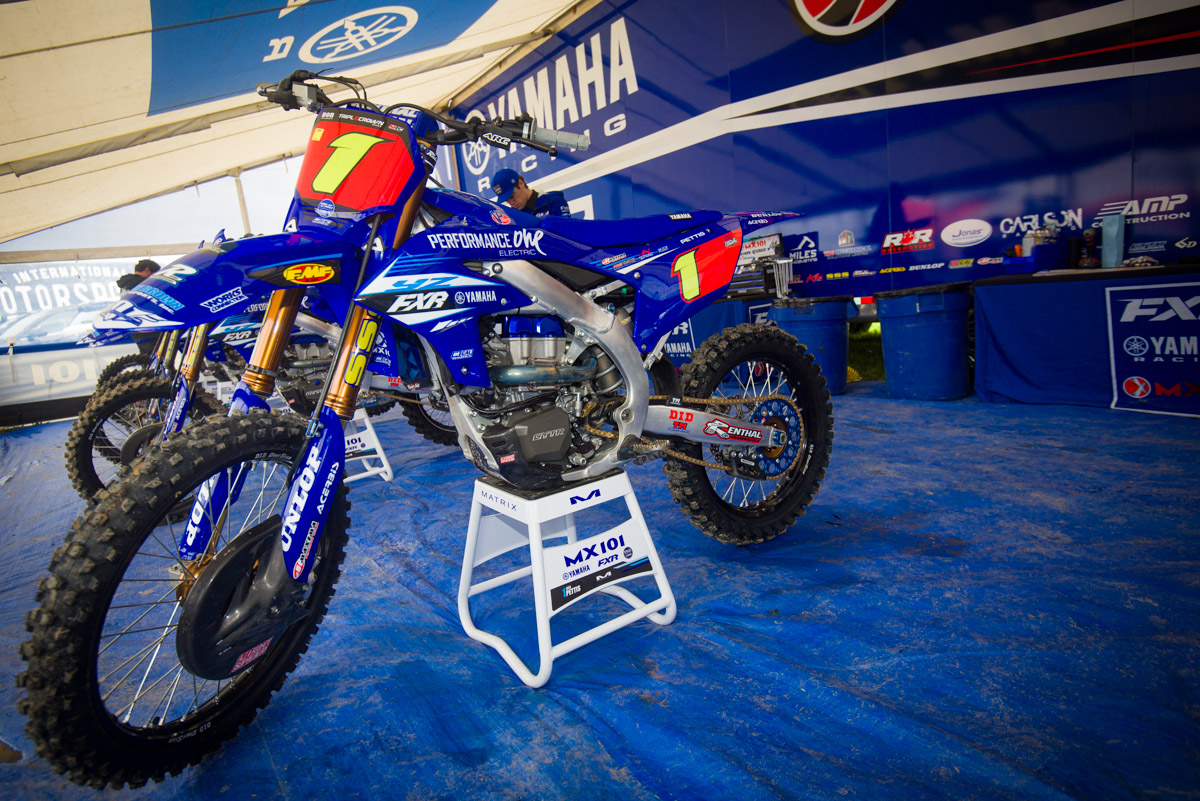 New for 2025 is the “Stages” competition, which is a team competition. The first stage wrapped up after round 2, with the MX101 Yamaha team taking the win and now running these yellow numbers to show they’re leading the Stages competition.
