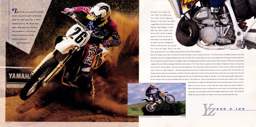 For this edition of Classic Ink, we are going to take a look back at some ads and literature for Yamaha’s all-new 1996 YZ lineup.