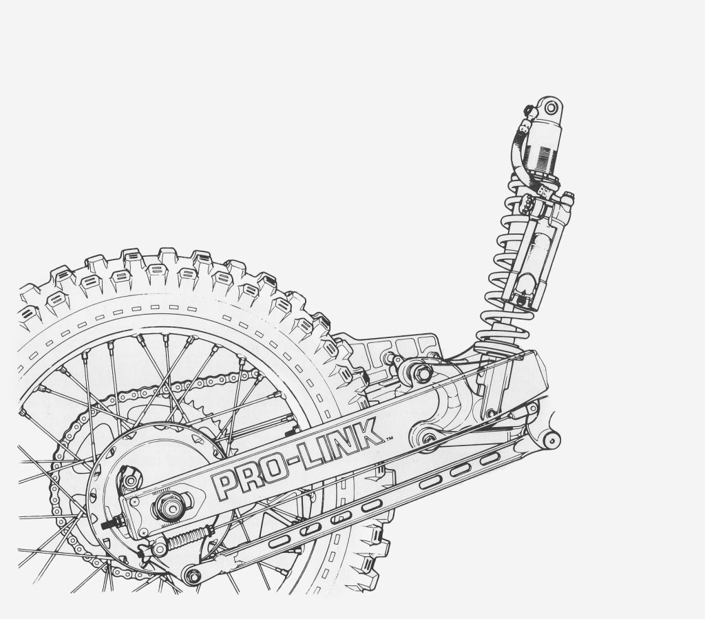 Paired with the redesigned Pro-Link was an all-new Showa remote reservoir shock. The new damper featured longer shaft travel, all-new valving, increased oil capacity, a 4mm larger internal piston, and an “automatic temperature control valve” to fight fading. The new shock added 0.6 inches of additional travel for a total of 12.6 inches with 18 available settings for compression and 21 available adjustments for rebound control.