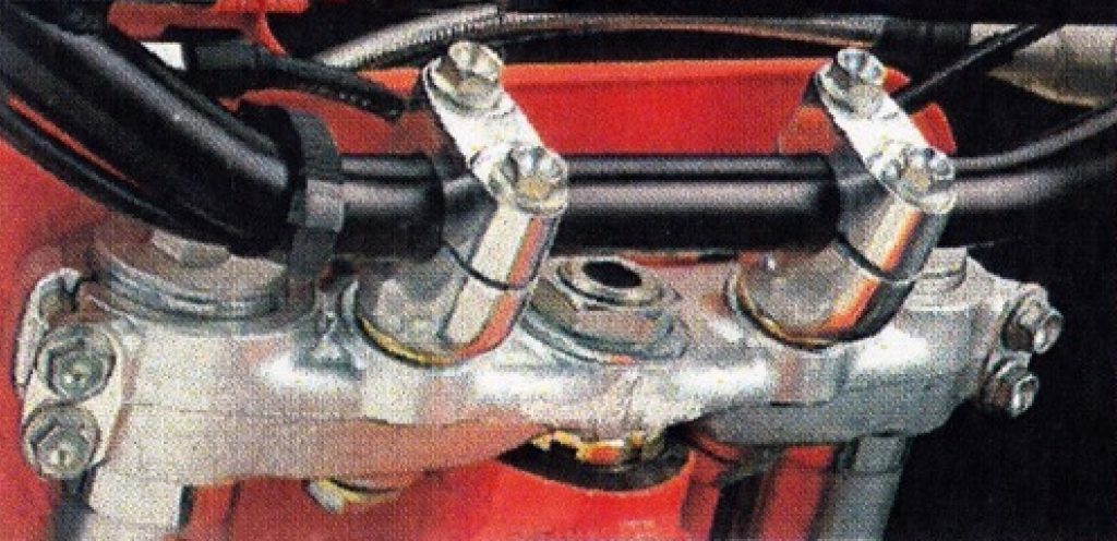 In 1984, Honda enlarged the main exhaust port and removed its support bridge to improve exhaust flow. This paid dividends on the dyno but caused the CR to catch rings and crack pistons. For 1985, an all-new cylinder offered redesigned porting and a return of the exhaust bridge. Photo Credit: Honda