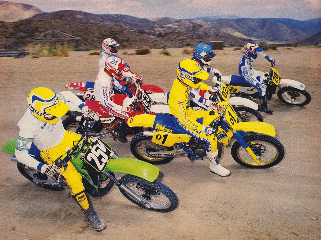 In the 1985 250 sweepstakes, there were a ton of contenders but no obvious victors. All the machines were flawed in one way or another, but most testers seemed to feel Suzuki’s RM250 did the best job of delivering a race-winning package. Credit: Dirt Bike