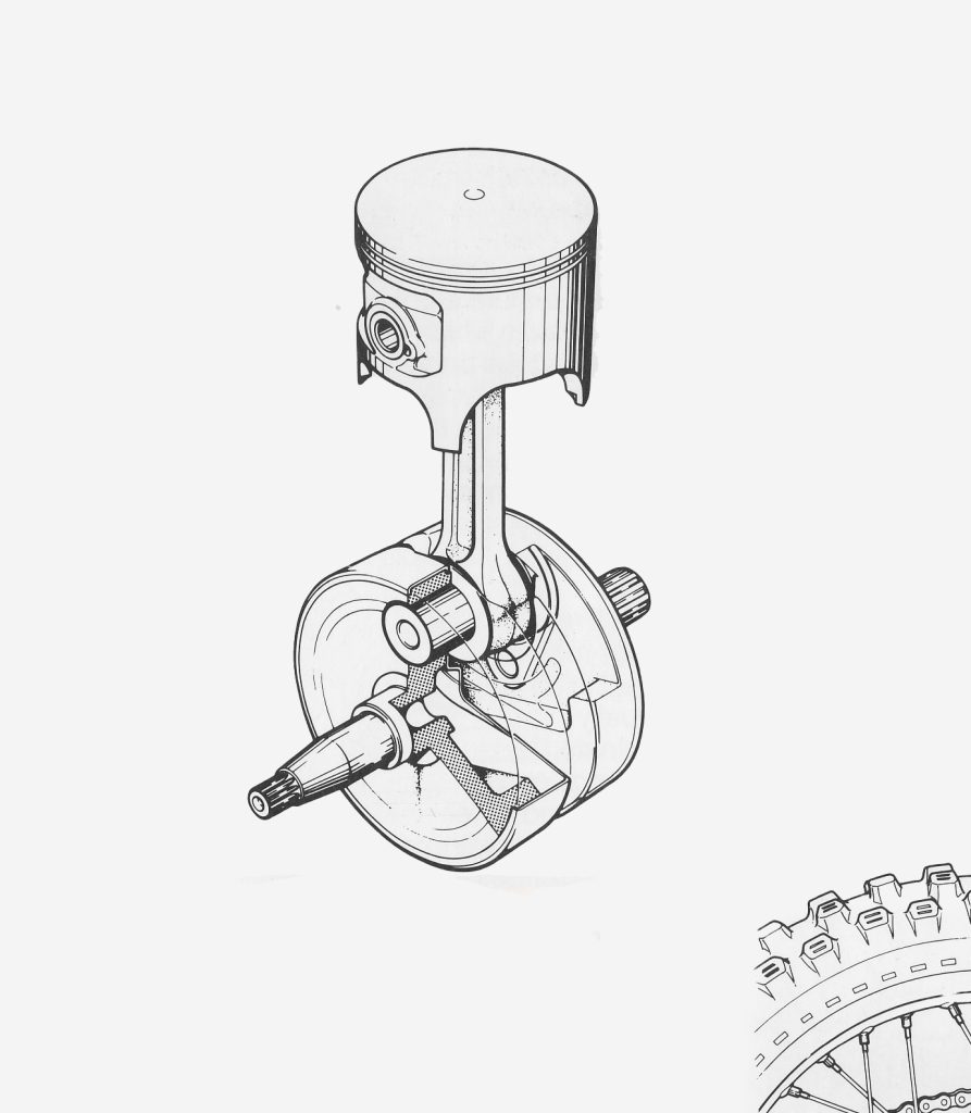 In addition to the redesigned ATAC, the 1985 cylinder featured all-new porting and a return of the exhaust bridge that had been sorely missed in the 1984 design. The bore and stroke remained unchanged at 66mm x 72mm with the same 8.6:1 compression ratio and 246cc of displacement as in 1984. A new crank for 1985 added revised main bearings with steel retainers in place of the problematic plastic retainers used in 1984. New cases for 1985 also offered reinforcements at the cylinder-case junction to reduce the chance of any leaks.