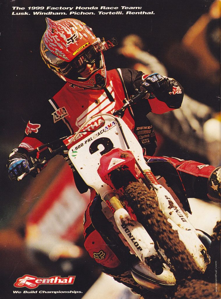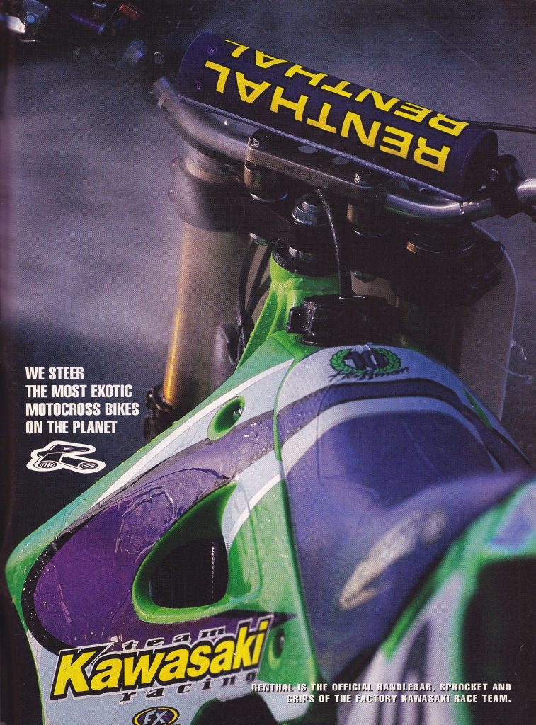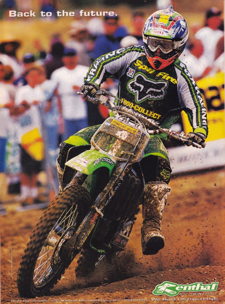 While McGrath was dominating the 250s on his Yamaha, a short redhead from Havana, FL was taking the Pro Circuit Kawasaki team to new heights on the 125s. Ricky Carmichael’s 1999 125 National Motocross title made it three in a row for RC and Kawasaki and seven straight 125 MX titles for Renthal.
