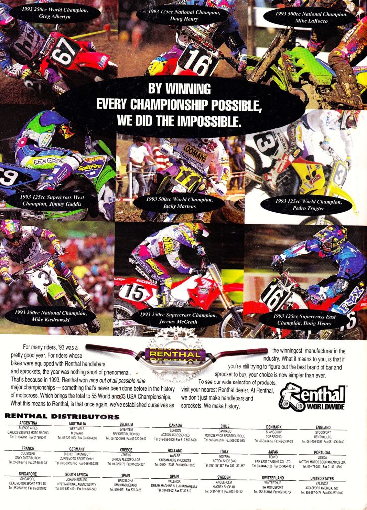 Renthal had an amazing season in 1993, capturing every major US and World Motocross title available.