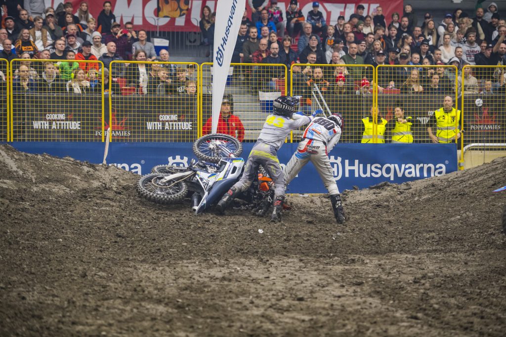 Tampere Supercross king Harri Kullas won the opening night, but in Saturday’s final he came up short on a triple, was injured in the crash, and retired from the race.