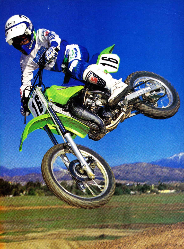 The new KX80 was an able jumper in 1986, but its soft fork settings made serious aerial work inadvisable until the front springs were upgraded. Photo Credit: Dirt Bike