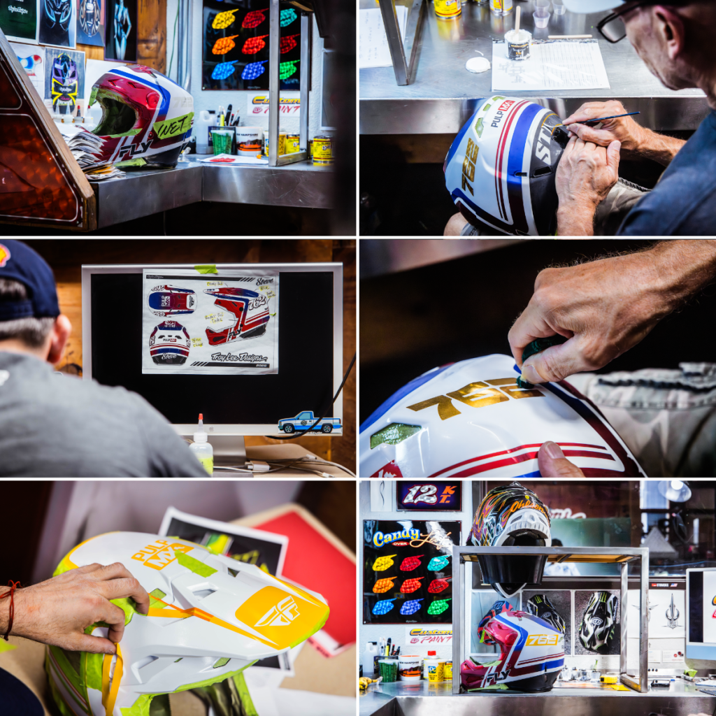 All my life I’ve wanted a Troy Lee painted helmet, I’m old enough to have wanted this when Troy Lee himself actually painted all the helmets that came in also! So with me teaming up with TLD for the Blair Matthes Show, I approached them about doing up a FLY helmet for me because, hey, we’re partners now right! Thanks to Jenna Hewitt and Mark Wilson down there, we made it happen not too mention FLY Racing for shipping me a brand new Formula helmet to give to Troy Lee.