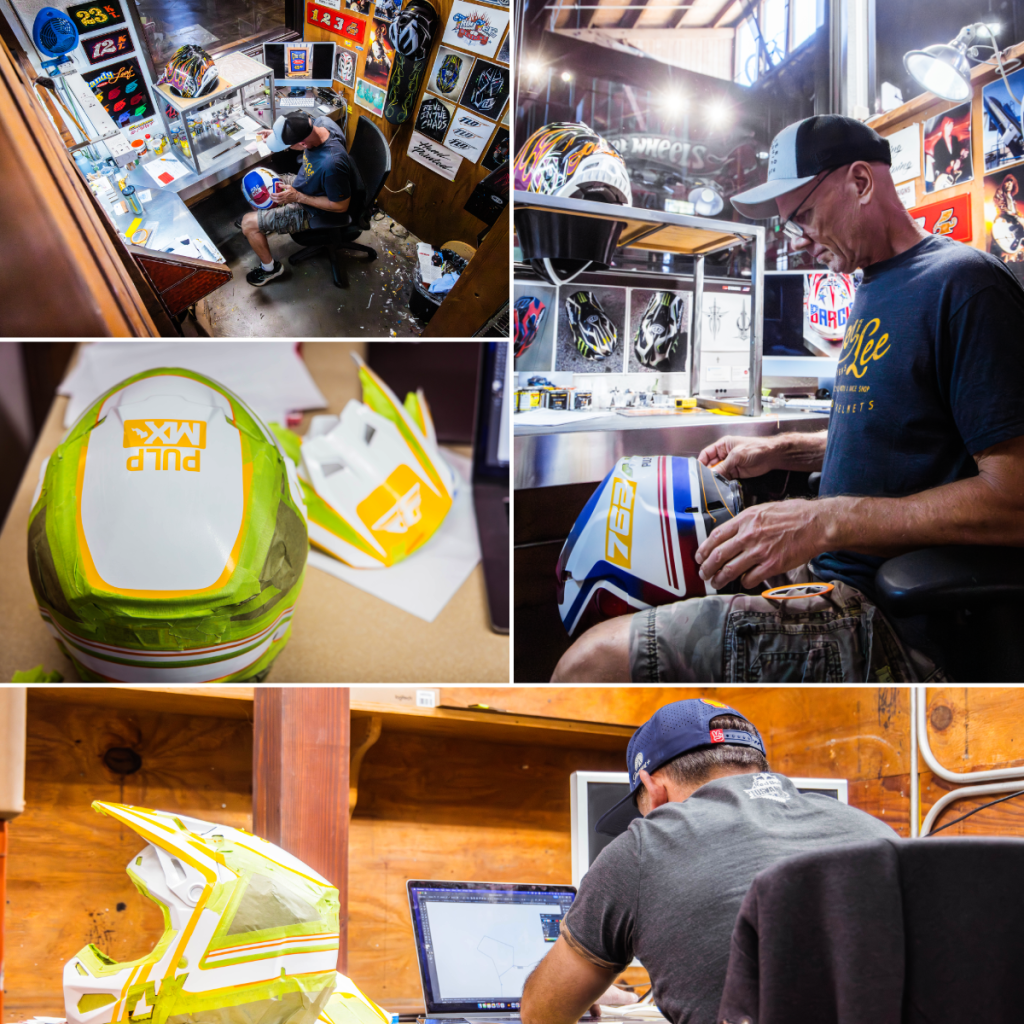 Mark asked me for inspiration so I quickly worked the Google and most of the ones I liked over the years belonged to guys from the ’80’s. I prefer the straight lines, solid colors and a “clean” look. You may like the flying eyeballs and splash colors everywhere but that’s not for me Dawg. I’m riding a white/red Yamaha but I know in 2027, I’ll have a blue Yamaha so I wanted to make sure that in a year from now, I’ve got a helmet with some blue in it. Pulpmx logos obvi. We went back and forth a couple of times off a drawing they sent me, I changed the numbers on the side a bit, the original ask was “Matthes” on the back but as Keefer mentioned, my jersey will have Matthes on it also so switch to Steve. We needed to have FLY on the chin bar because they’re a huge part of everything we do here and also, they gave me the helmet so, like, duh. And to be honest the solid gold flake numbers on the side were never approved by me, LOL, it just showed up like that which is fine. I like it. I also insisted the “Troy Lee Designs” on the visor be the old school pink/blue coloring also.