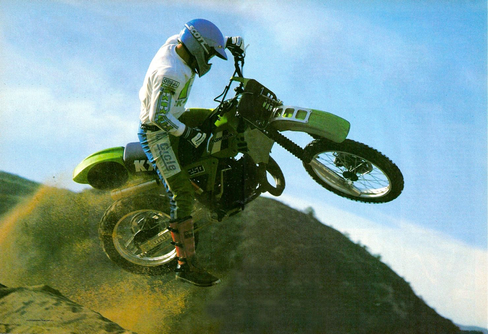 Strong low-end power made getting airborne easy on the ’84 KX250. Photo Credit: Tom Sapoto