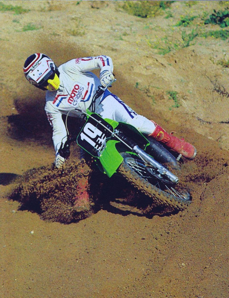 Usually, stubborn-corning bikes are good at speed, but the 1984 KX250 defied this convention. It was not a complete paint-mixer at speed like the Honda CR250R, but the KX liked to shake its head under deceleration. At speed, it imparted an unsettled feel that made the rider unsure of exactly what the bike was doing. It danced, wiggled and generally wandered wherever it pleased.