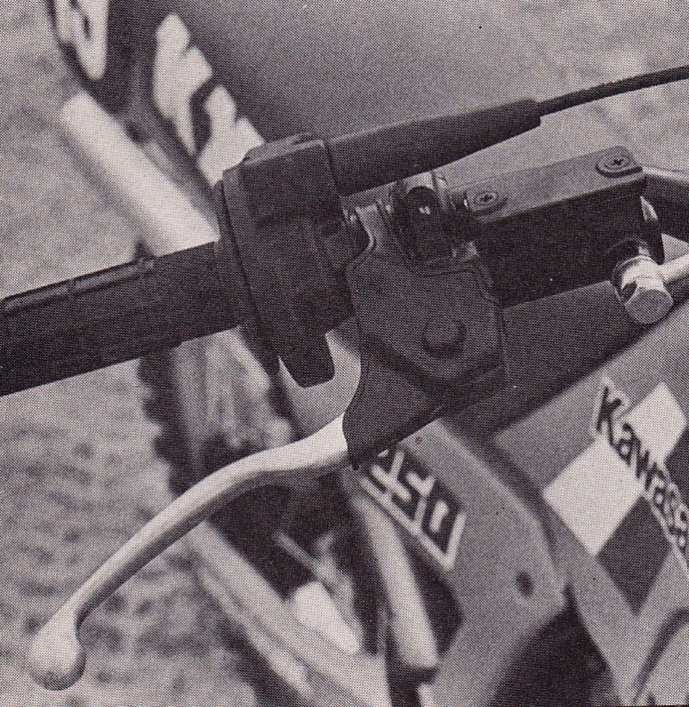 While powerful, the front disc binder on the ’84 KX was far from trouble free. The unit required frequent bleeding and leaking hydraulic lines were common. Photo Credit: Motocross Action