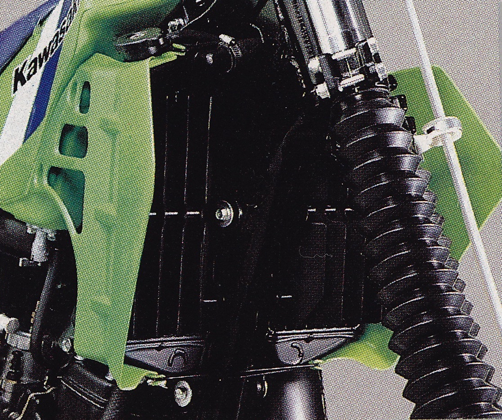 One of the few major changes on the KX250 for ‘84 were these new radiators that were repositioned to sit two inches lower on the chassis. Photo Credit: Kawasaki