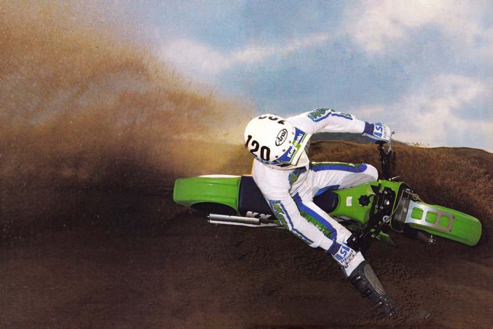 Getting the 1984 Kawasaki KX250 to turn took total commitment and a lot of muscle. Photo Credit: Rich Cox