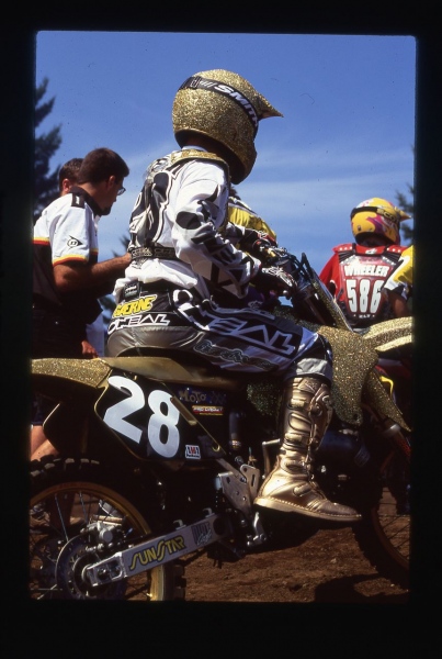 Later that summer, Team Moto XXX showed up at Washougal with both riders bikes and gear pasted with gold (Deegan) and silver (Swink) glitter. It is believed that it was and is the first time a team has ever done thatâŚ