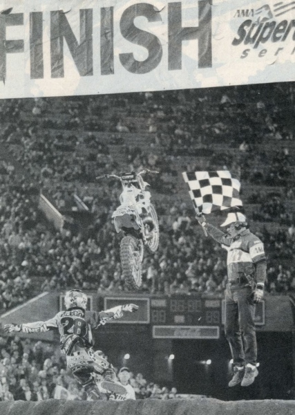 SandinââHe won it! I could not believe it. On the last lap, when I knew he was going to win, I ran down the stairs, jumped over the wall and over security and onto the field. I didnât care what happened to me. Right as the bike was flying through the air over the finish, I had the feeling like I had won the race. I was never good at racing but always wanted to be. I canât explain the feeling and to this day I feel like I won the race.â